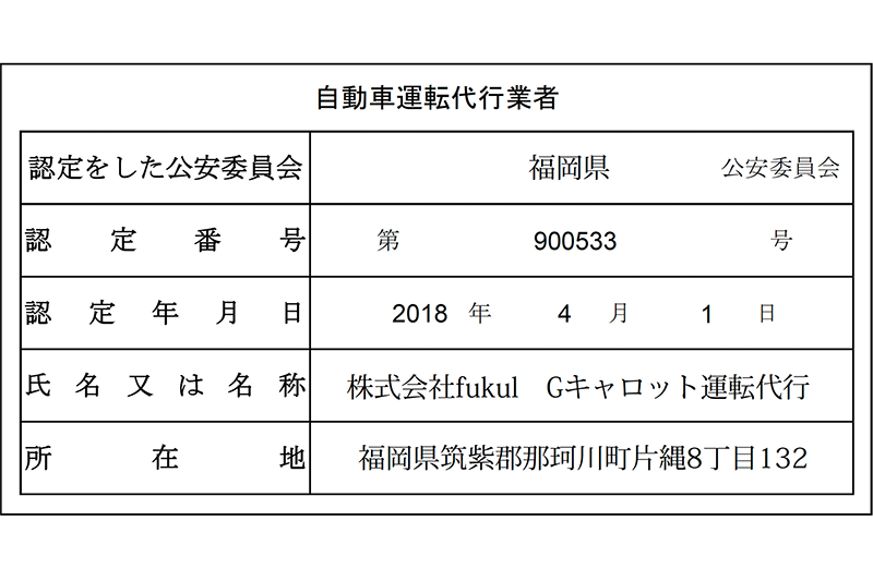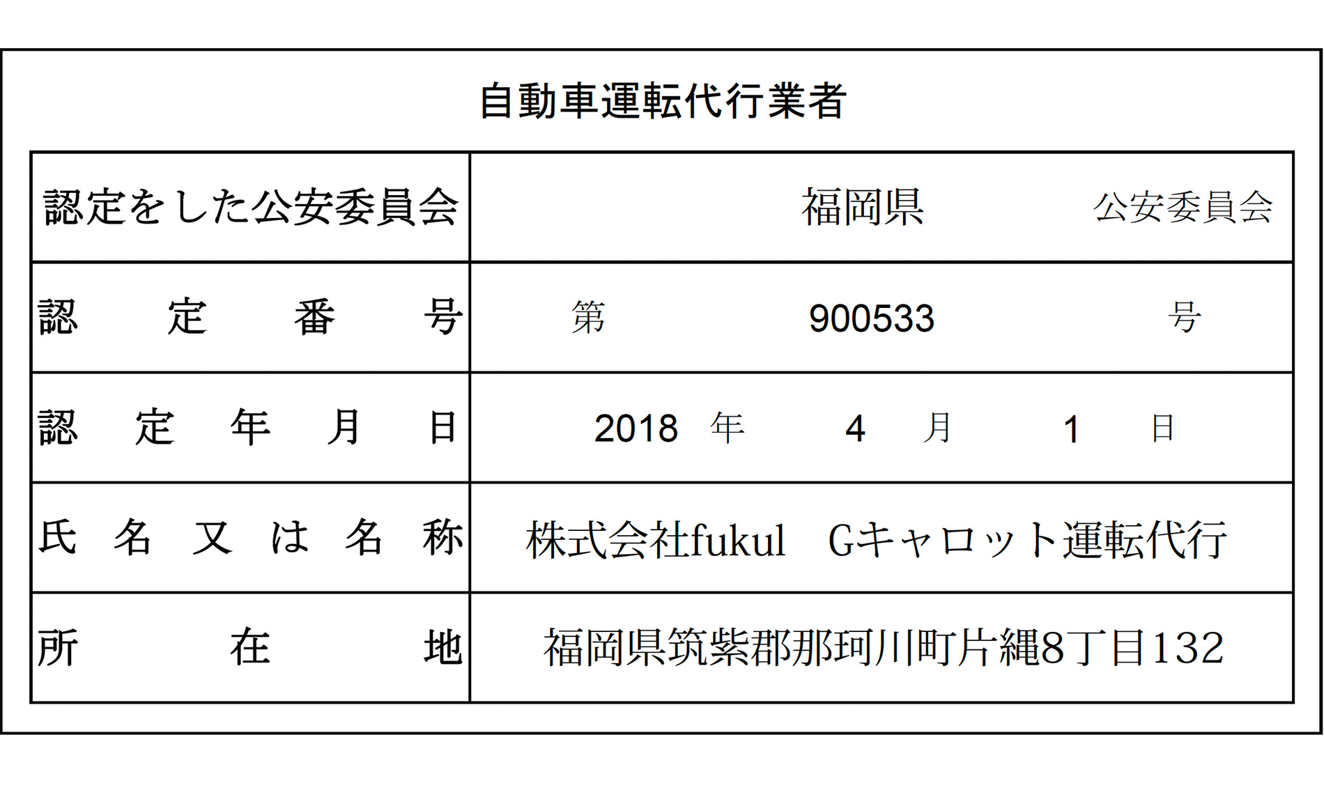 Gキャロット運転代行は「優良運転代行業者評価制度」の審査基準をクリアして、福岡県で350社以上の運転代行の中から優良事業者として認定されました。